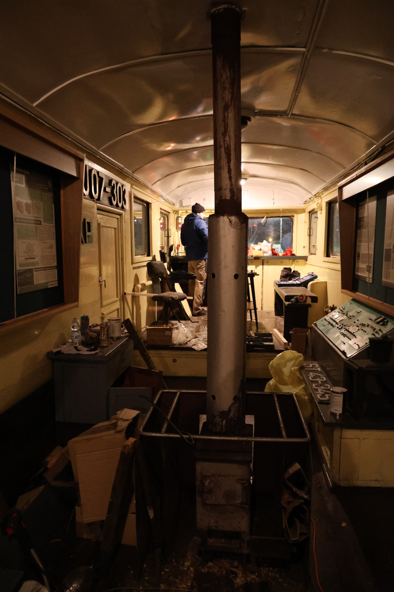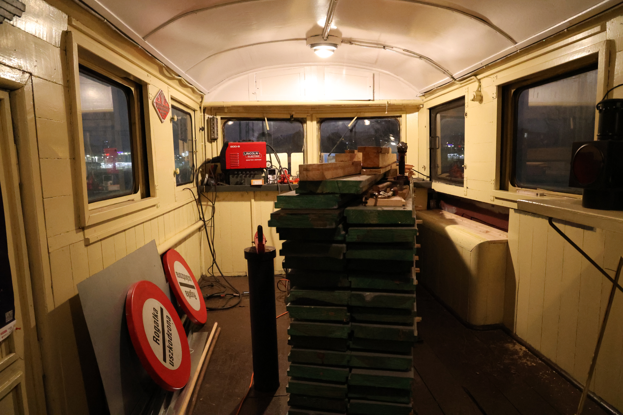 A teraz do konkretów: dokończyliśmy wymianę podłogi pod jednym z pulpitów. Krzysiek D. i Karolina precyzyjnie docięli deski, które spasowały lepiej niż meble z marketu. Sebastian natomiast zużył kilka kilowatogodzin energii i sporo CO₂, spawając nową rynienkę nad oknami – trzy są już wymienione, została tylko jedna. Z kolei Krzysztof W. zajął się przygotowaniami do wymiany wewnętrznego poszycia ściany, tej pod drugim pulpitem 🙂
