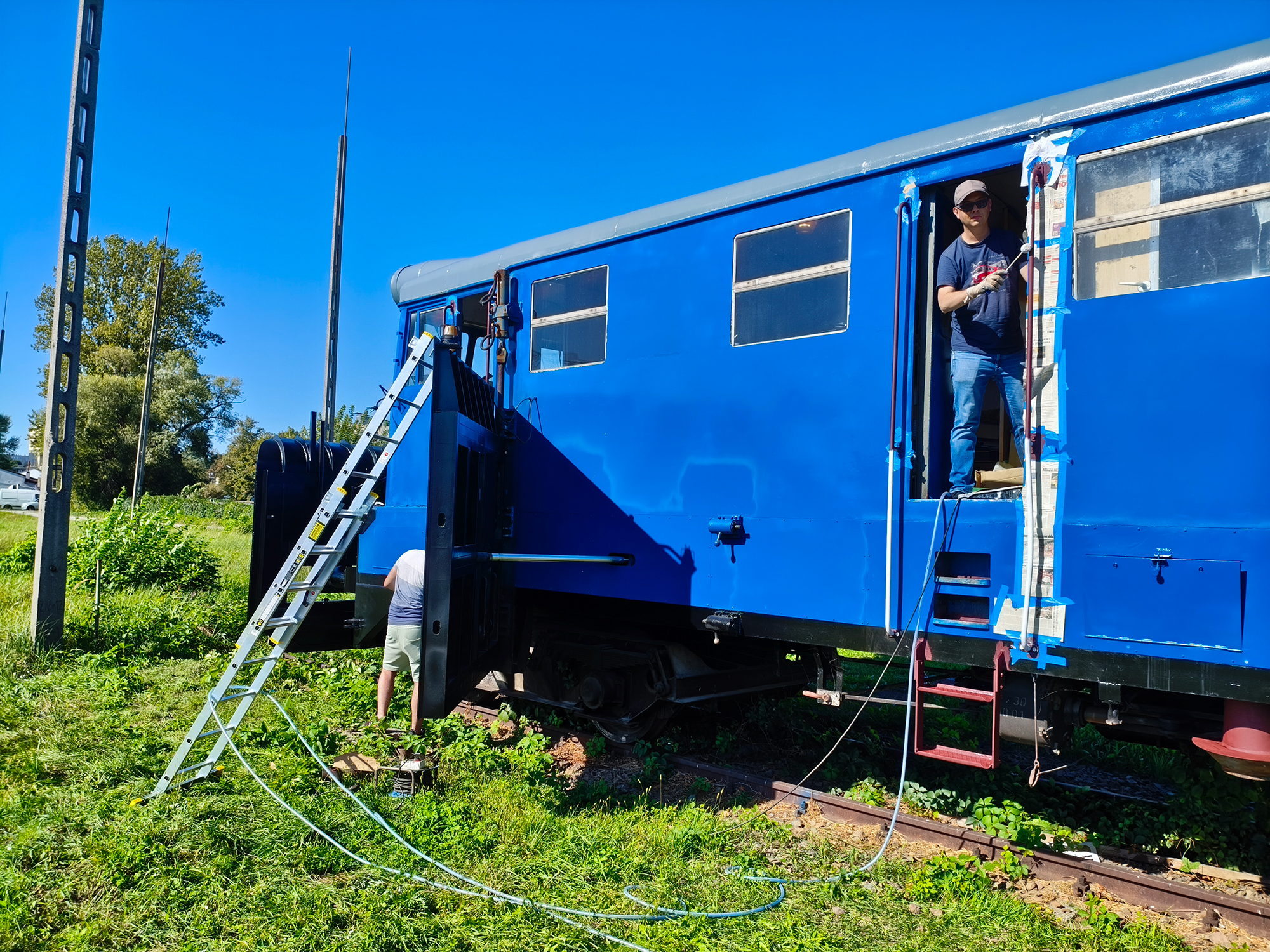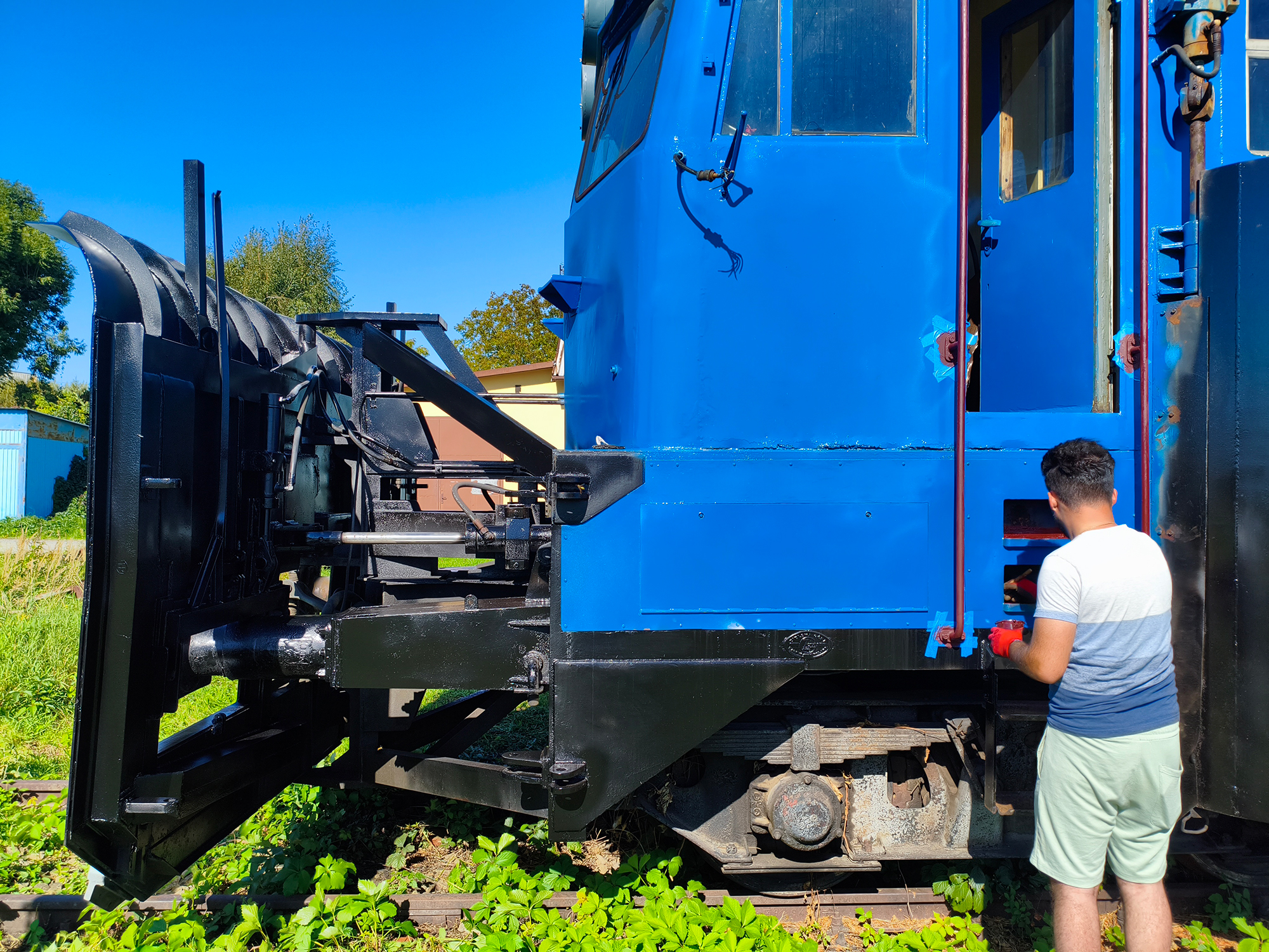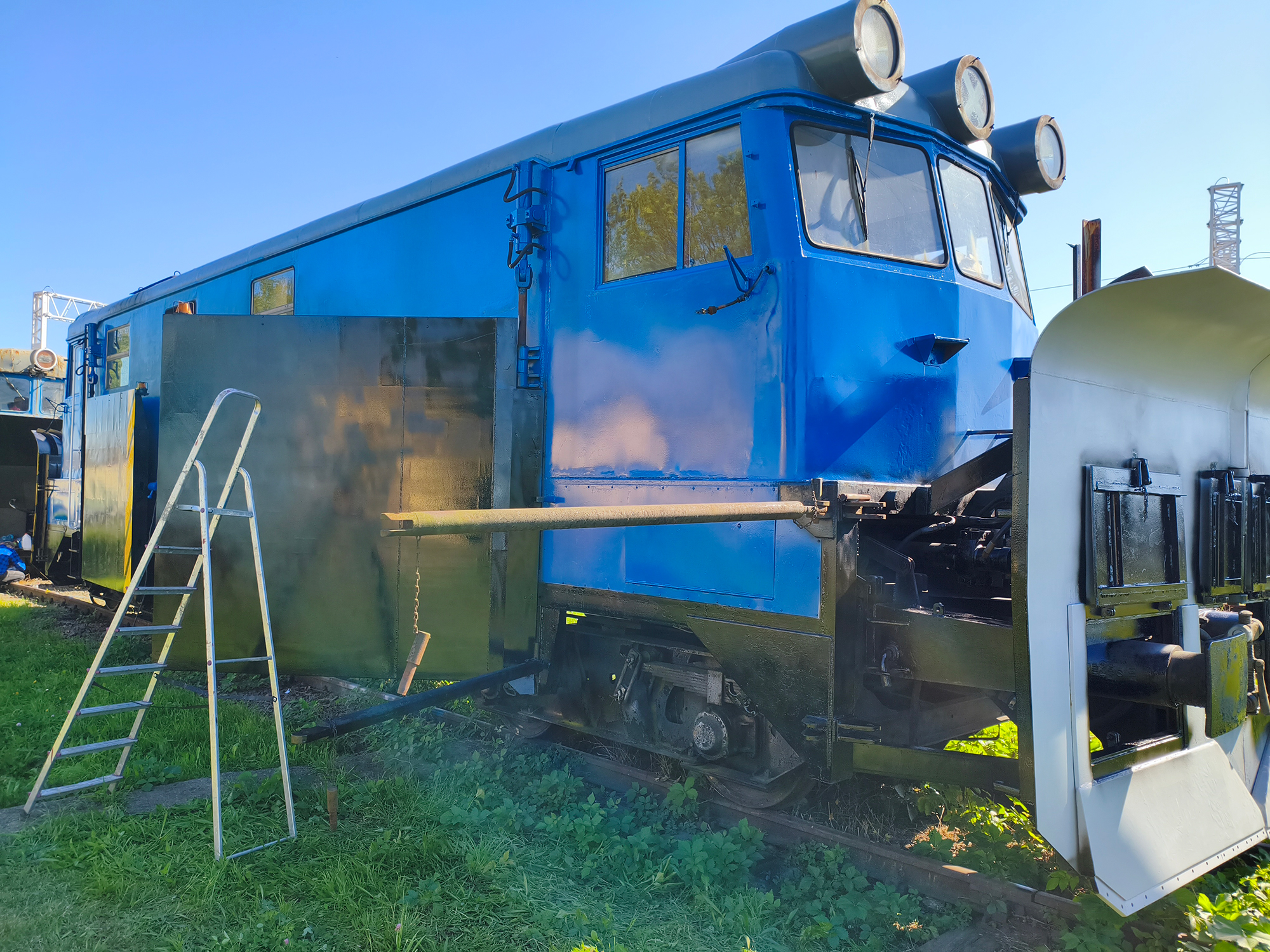20 września korzystając z dobrej pogody w czteroosobowym składzie udało się kontynuować prace przy pługu. Stopnie i poręcze zyskały podkład i białą farbę. Przedni i boczny lemiesz zyskał brakujący czarny kolor. Miejmy nadzieję, że doczekamy się jeszcze cieplejszej pogody i uda się nanieść ostatnie brakujące warstwy farby.
